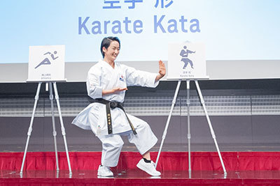 Seeing the pictograms for their respective sports, the athletes marveled: "It perfectly captures the starting stance. You can almost see the muscles, like it's about to move any second," and "The uniform and belt are faithfully reproduced. The footwork is just like the real thing—amazing." Mimicking the pictograms' movements, they expressed their determination for the 2020 Games.