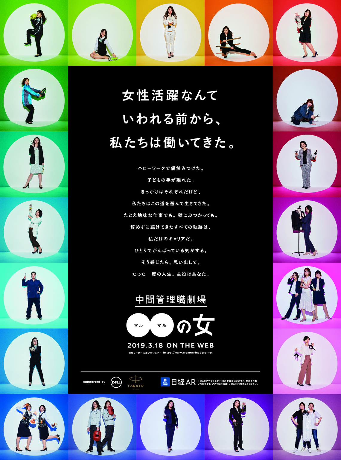 A special feature allows readers to view the articles by holding the Nikkei AR smartphone app over the "Women in [Field]" logo in the newspaper.