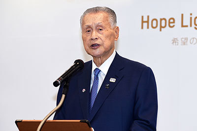 Opening the event, Chairman Mori touched on the torch relay schedule, stating, "The relay's concept is 'Hope Lights Our Way / Connecting the Path of Hope.' We aim to realize a relay embodying this banner. With today's unveiling of the emblem, torch, and ambassador, I hope momentum will further build, making this a relay enjoyed by many people nationwide."