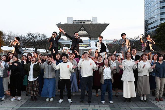 During the opening, members of the university a cappella group "50Fes" and many students performed the song "Ashita ga Aru Sa" (There's Always Tomorrow). This song, sung by the late singer Kyu Sakamoto, was hugely popular during the 1964 Tokyo Olympics.
