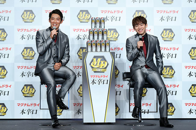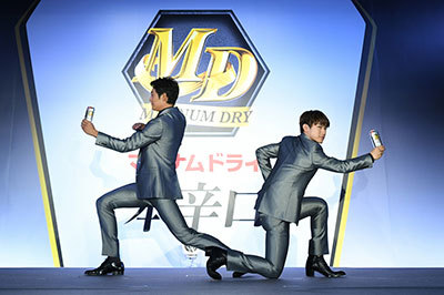 Suntory Beer held a TV commercial launch event for its new product "Magnum Dry Honkarakuchi" in the new category at the Conrad Tokyo in Minato Ward on March 25.