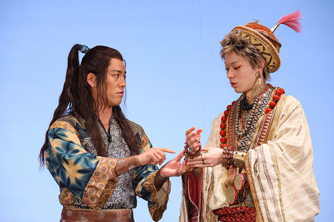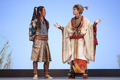 After screening the new "That's the Point" commercial featuring Oni-chan accumulating "Hero Points" to buy new clothes, Suda introduced his own costume: "The hat is the point. It incorporates various elements like Middle Eastern fabrics and South American materials," introducing his own costume. Kiriguchi responded with an envious look, saying, "The designer's dedication is incredible," and revealed, "Two years ago, I consulted the designer about wanting new costumes, but it never happened..." admitting he's been wearing the same costumes for five years, which made the audience laugh.