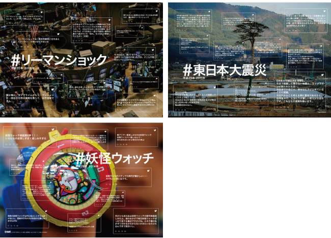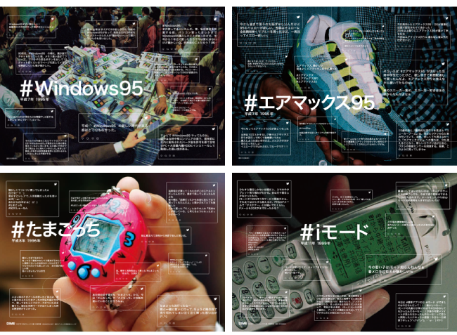 Launched on March 28 (accessible until May 31 via smartphone or PC), the limited-time site features a "Keyword Timeline" listing events symbolic of the Heisei era. It includes 140 keywords, such as products and buzzwords that won the DIME Trend Awards over the years, and incidents emblematic of the era.