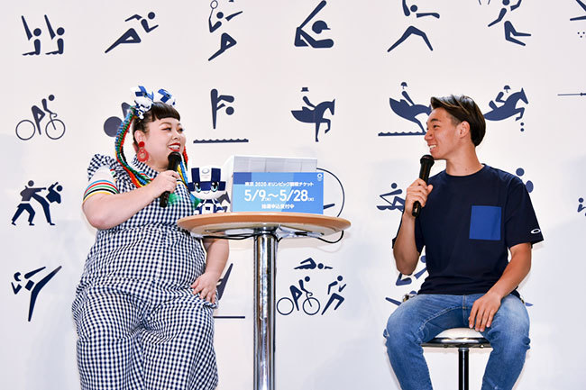 The two discussed the Tokyo Games and spectating. Watanabe remarked, "The Olympics are a major event that ignites passion worldwide, for both athletes and spectators. I definitely want to cheer at the venues." Nakamura responded, "Spectator cheers greatly impact an athlete's motivation."