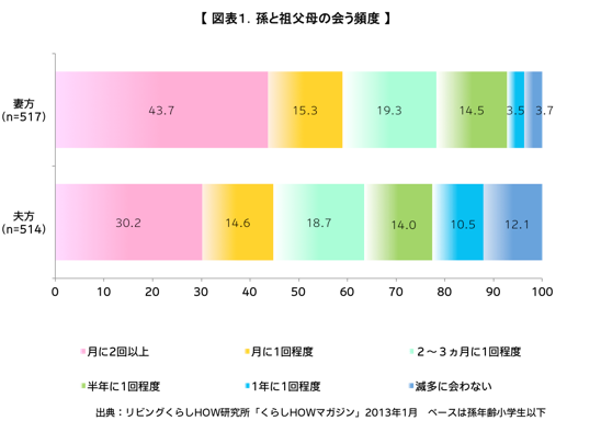Data reveals overwhelmingly higher involvement from maternal grandparents. While 30.2% of paternal grandparents see their grandchildren twice a month or more, maternal grandparents do so at 43.7%—a gap of over 10 percentage points (Chart 1).
