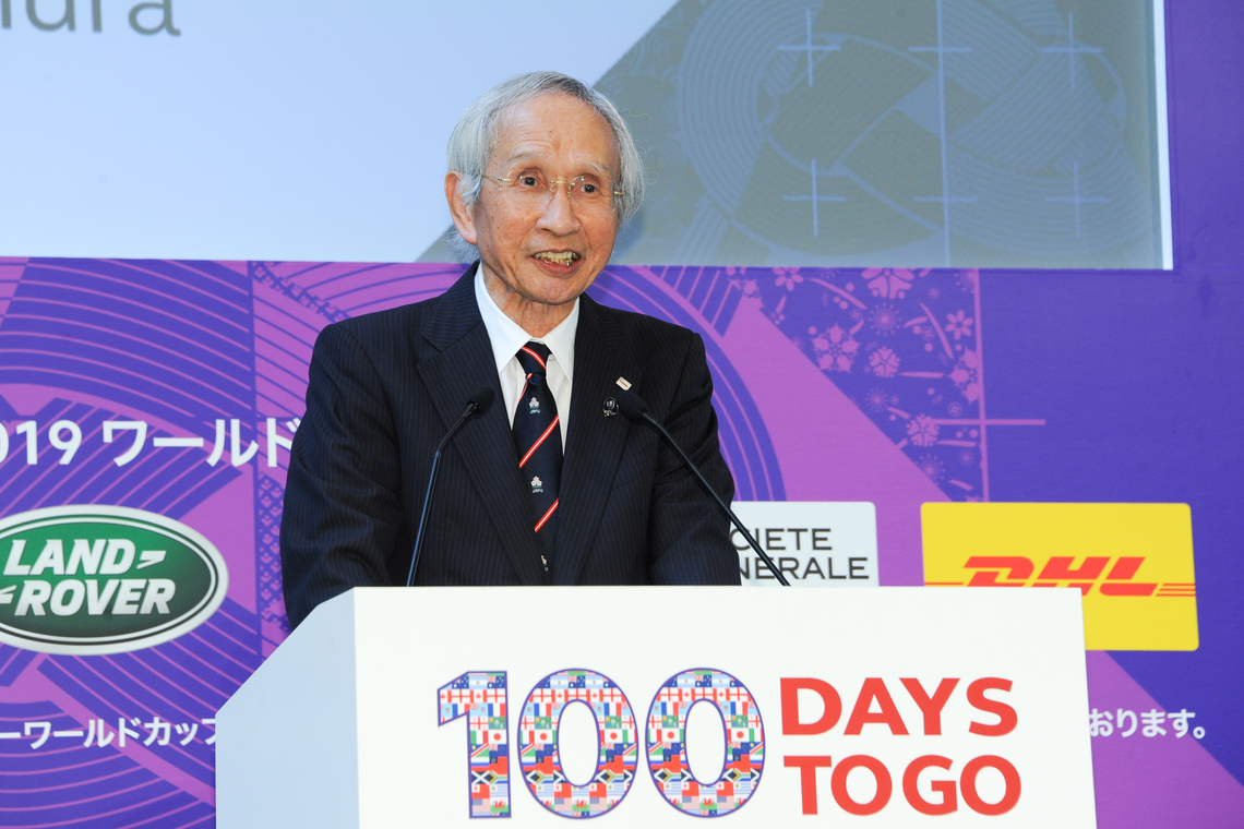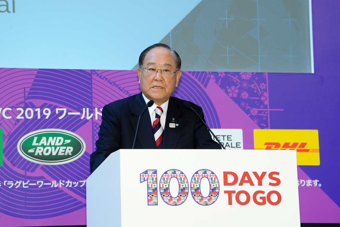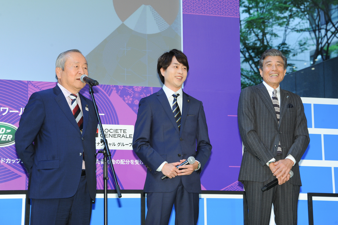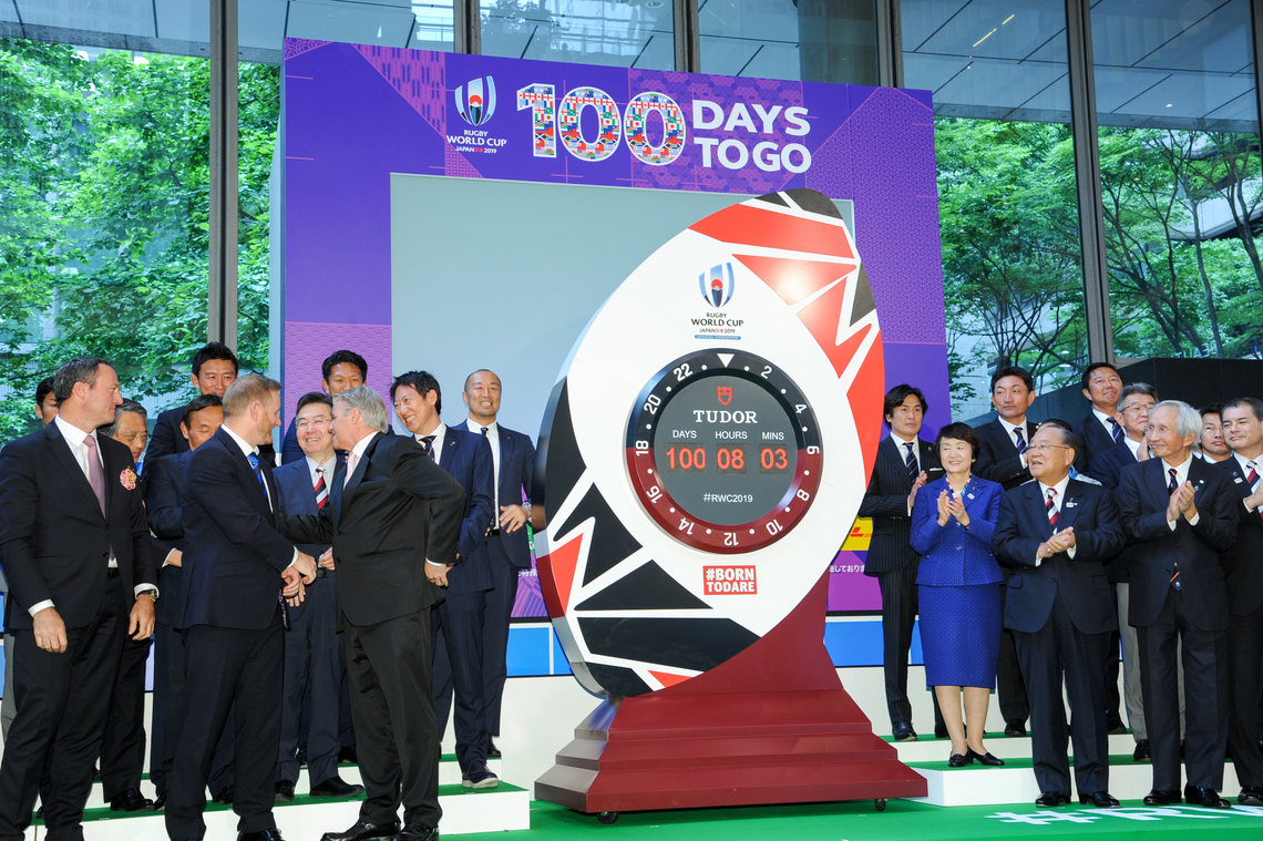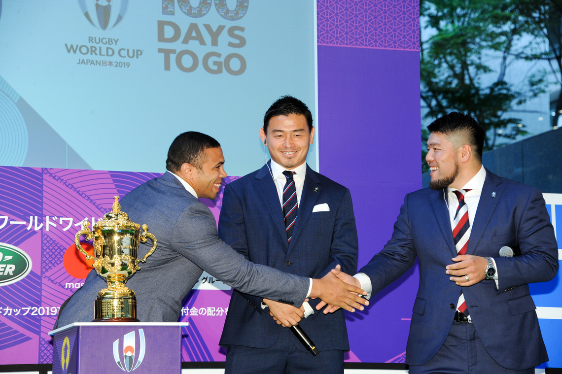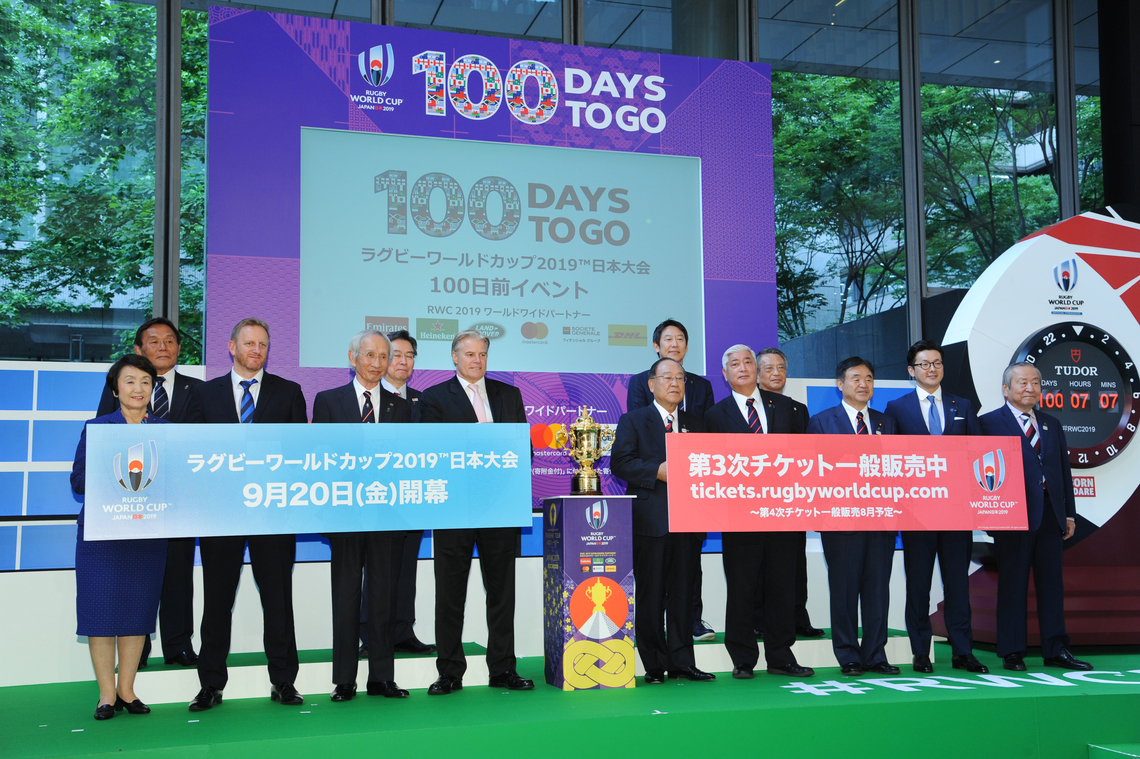 The Rugby World Cup 2019 Organizing Committee held an event at the Marunouchi Building in Chiyoda Ward, Tokyo, on June 12 to commemorate 100 days until the Japan tournament.