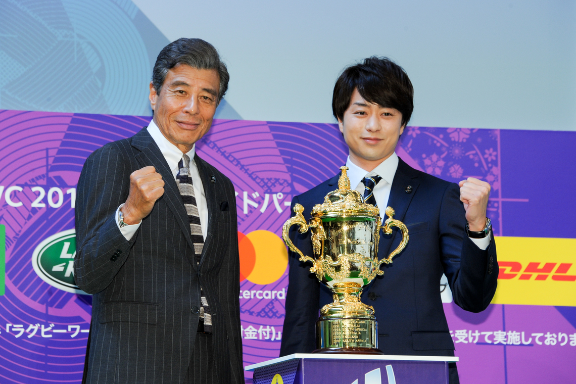 Following the four-person talk, the tournament's championship trophy (the Webb Ellis Cup) was unveiled by former South Africa player Bryan Habana and former Wales player Shane Williams. When asked for their championship predictions, both noted many teams had a chance. Goro Maru, however, declared, "Japan will win!" igniting the crowd.