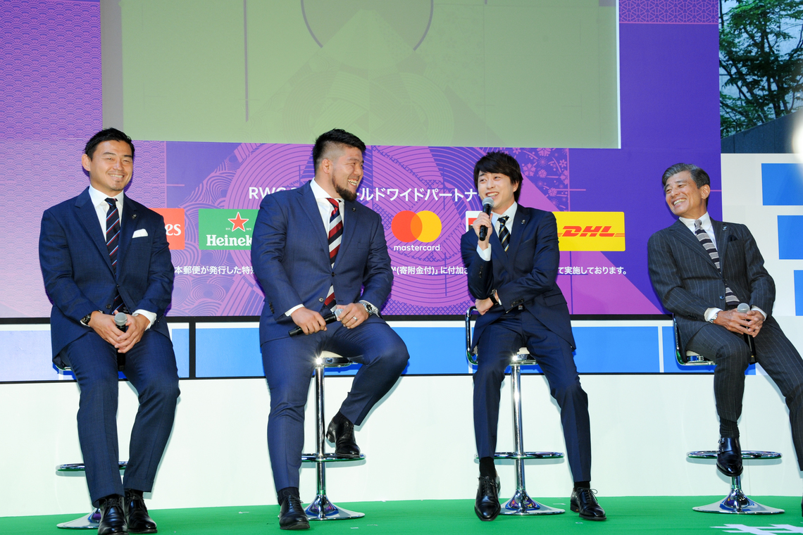 The two, joined by former Japan players Ayumu Goromaru and Kensuke Hatakeyama from the 2015 England tournament, discussed behind-the-scenes stories from the 2015 tournament, the national characteristics of participating countries, variations in fan support, and pre-match rituals. Sakurai said, "I want people who haven't been exposed to rugby before to feel the excitement of the World Cup." Goromaru stated, "I hope the success of this tournament will lead to the 2020 Games."