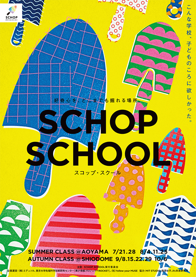 This summer, SCHOP SCHOOL (organized by the SCHOP SCHOOL Executive Committee, planned and operated by EduSol, the University of Tokyo's Research Center for Advanced Science and Technology "ROCKET Project for Discovering Exceptional Talents," and follow your MUSE, with cooperation from MIT STUDIO, Math Girls, ifs Future Research Institute, and Yamazakura) will open its doors to nurture children's sensibilities and expressive abilities.