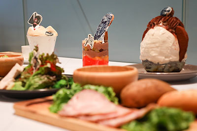 The venue includes an official merchandise shop. Additionally, the adjoining "Cafe THE SUN" will offer 12 collaboration menu items inspired by the work's world during the event period. These include the "Survey Corps Cocoa with Novelty" featuring a character drawn on the milk's surface and the "Secret of the Wall Sandwich," where a giant peeks out from a bread hole modeled after the wall.