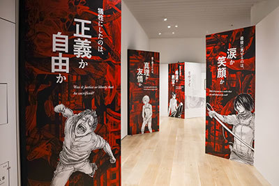 The "Attack on Titan Exhibition FINAL," featuring original artwork from the popular manga "Attack on Titan" (original work by Hajime Isayama), which has sold over 78 million copies in 18 languages across more than 180 countries, opened on July 5 at the Mori Arts Center Gallery (Roppongi Hills) in Minato Ward, Tokyo. (Through September 8)