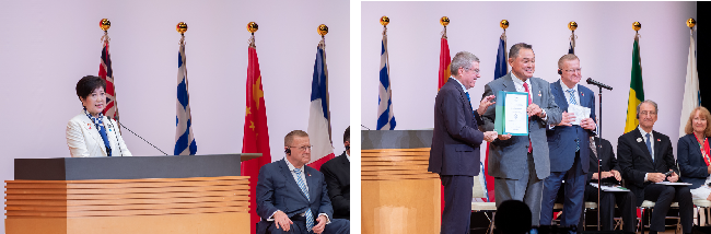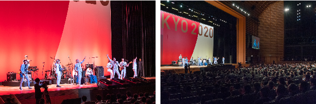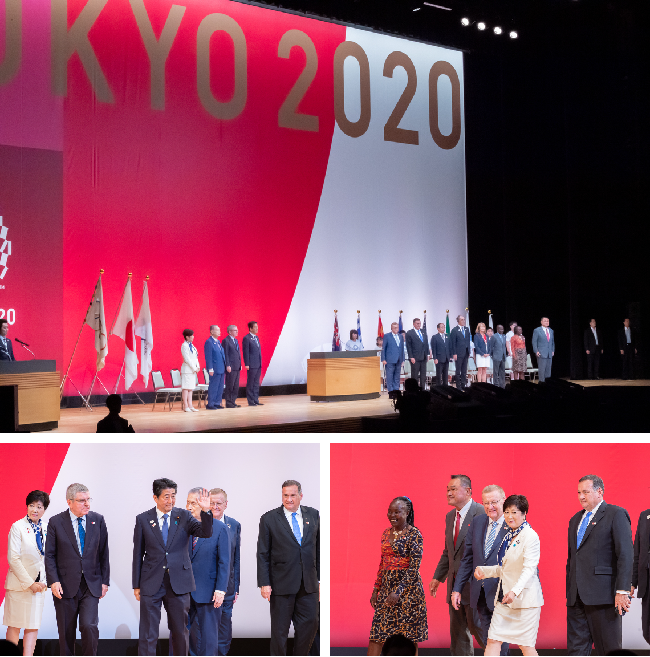 The ceremony held in Hall A was a grand event, attended by approximately 4,000 guests. This included members of the Organizing Committee, the IOC, ambassadors from various countries, national sports federations, Games partners, around 500 junior high and high school students from Tokyo, and elementary and junior high school students from the three prefectures affected by the Great East Japan Earthquake.