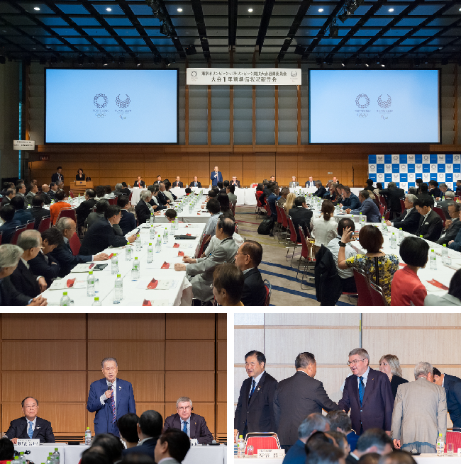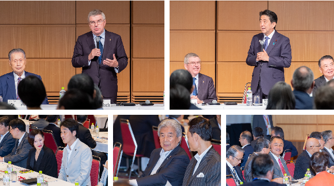 The meeting was attended by approximately 200 people, including the organizers (Organizing Committee): Honorary President Fujio Mitarai, President Yoshiro Mori, and Secretary General Toshiro Muto; guests: International Olympic Committee (IOC) President Thomas Bach and Tokyo Olympic Coordination Commission Chairman John Coates; Prime Minister Shinzo Abe, serving as the Organizing Committee's Senior Advisor and Chairman; as well as council members and directors.