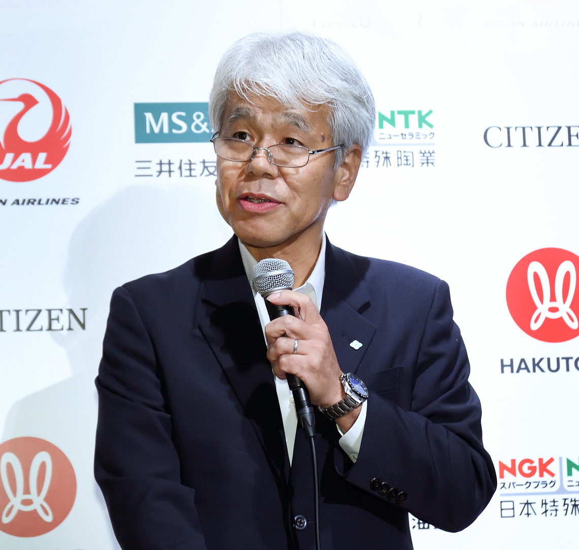 Next, the new corporate partners were introduced: Mr. Norio Takeuchi, Managing Director of Citizen Watch; Mr. Masahiro Ikuma, Managing Officer of Suzuki; and Mr. Eiji Ishida, Executive Officer of Sumitomo Corporation. Each shared their aspirations.