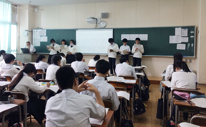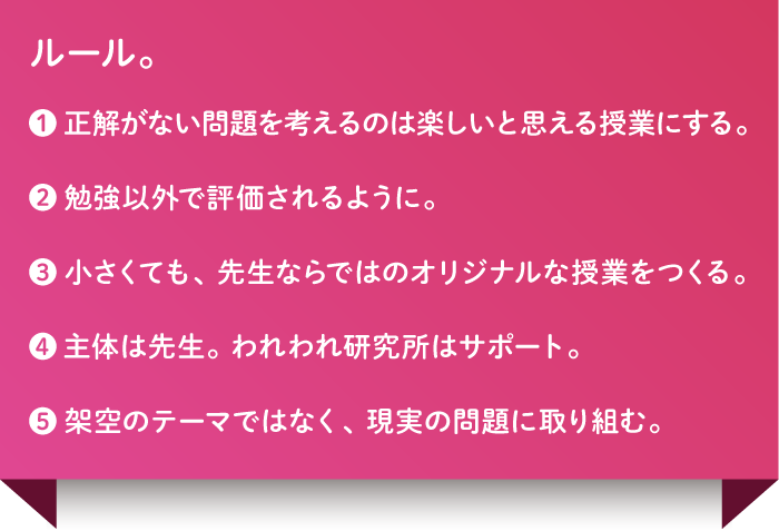 The collaboration took place at Hatsushiba Tondabayashi Junior High School, an academic-focused school in Osaka. Japanese teacher Mariya Maenaka explains, "Junior high students are in a transitional phase between childhood and adulthood. They still rely heavily on adult answers for career paths and other problems. They struggle to feel confident in their own conclusions." For these students, we started developing a "lesson with no right answers" as part of their "inquiry-based learning" curriculum. We set rules for the thinking process.