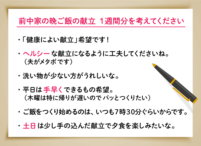 "I struggle with planning our daily meals..." slipped out from the teacher. That was it! A problem the teacher genuinely struggled with! Perfect. Plus, if the teacher cooked at home, they could provide feedback. And so, the lesson theme was decided! "Huh? Is that really okay? (laughs)" the teacher was initially hesitant, but we built the lesson around it.