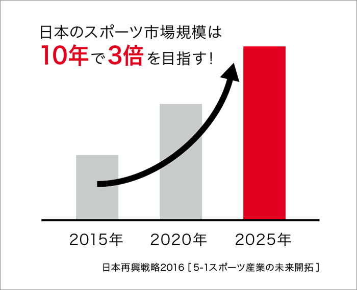 ※In its 2016 "Japan Revitalization Strategy," the government set a target to expand the sports industry from 5.5 trillion yen in 2015 to 15 trillion yen by 2025.