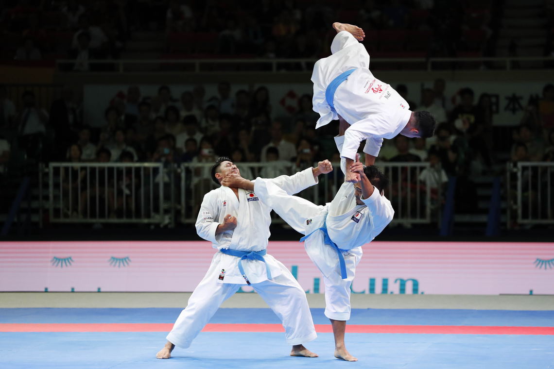 In "Kata," Ryo Kiyuna (three-time consecutive World Champion) won the men's individual title, while Kiyo Shimizu (2016 World Champion) won the women's individual title. The Japanese teams also won both the men's and women's team events.
