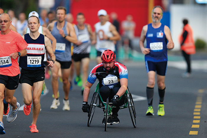 Masters sports are for all adults aged 30 and over to "compete." To establish this, it's crucial to show the image of diverse adults participating (photo: 2017 Auckland Games).
