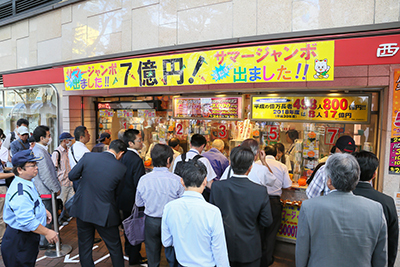 The "Halloween Jumbo Lottery" and "Halloween Jumbo Mini" went on sale nationwide on September 24th. A commemorative launch event was held at the Nishi-Ginza Chance Center in Chuo Ward, Tokyo.