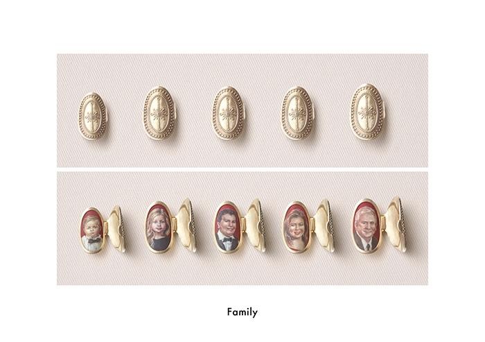 The image of a classic locket pendant holding a family photo. The front decoration is crafted with metal engraving.