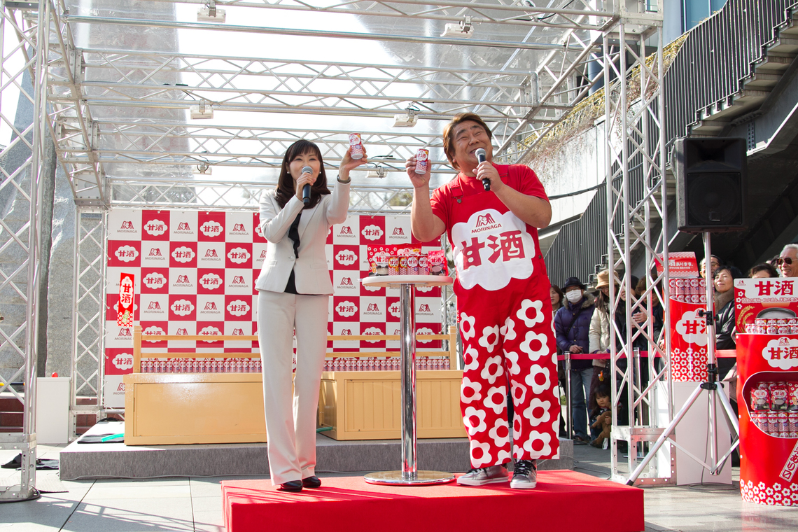Morinaga & Co. held an event on January 20th at Tokyo Skytree Town's Solamachi Plaza in Sumida Ward to commemorate the 40th anniversary of its canned "Morinaga Amazake" product.