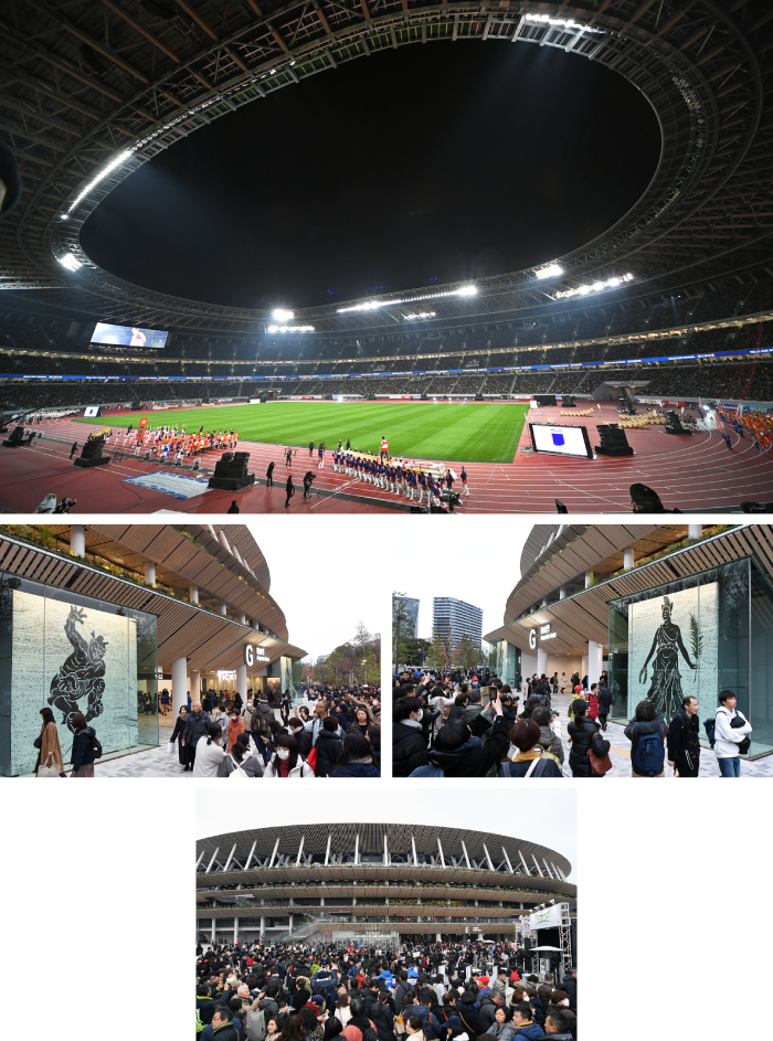 The Japan Sports Council (JSC) opened the newly constructed National Stadium (Shinjuku Ward, Tokyo) to the public on December 21, holding an opening event titled "HELLO, OUR STADIUM" to celebrate its completion. (Sponsored by ASICS Japan, Coca-Cola Japan, JR East, Hisamitsu Pharmaceutical, NTT Group, Japan Airlines, Panasonic, The Asahi Shimbun, Sumitomo Mitsui Financial Group, Google, Reconstruction Agency, The Yomiuri Shimbun) to celebrate its completion, drawing approximately 60,000 spectators. The stadium will serve as the main venue for the 2020 Tokyo Olympic and Paralympic Games, hosting the opening and closing ceremonies as well as track and field events.