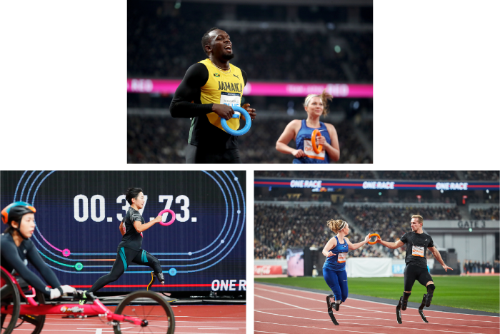 Participants included track legend and gold medalist Usain Bolt, alongside para-athletics gold medalists and world record holders like Hannah Cockcroft and Mar van Rijn. From Japan, Olympic representatives Asuka Cambridge, Yoshihide Kiryu, Shota Iizuka, and Para athletes Momoka Muraoka and Saki Takakuwa. They formed two teams each: Japan Select and World Select. The first to fourth legs of the two World Select teams ran on tracks in Paris and Los Angeles, the host cities for the 2024 and 2028 Olympics. With the cooperation of the NTT Group, the races were synchronized in real time, creating a single unified race.