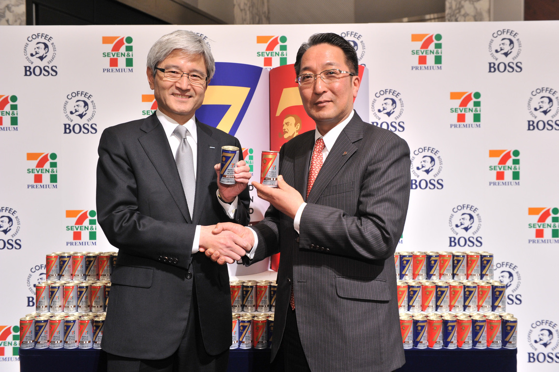 Seven & i Holdings and Suntory Beverage & Food International held a product briefing and launch event on January 14 at The Prince Park Tower Tokyo in Minato Ward to commemorate the release of their jointly developed double-brand canned coffee: "Seven Premium x Suntory Boss 'World Seven Blend Original'" and "World Seven Blend Light Sugar."