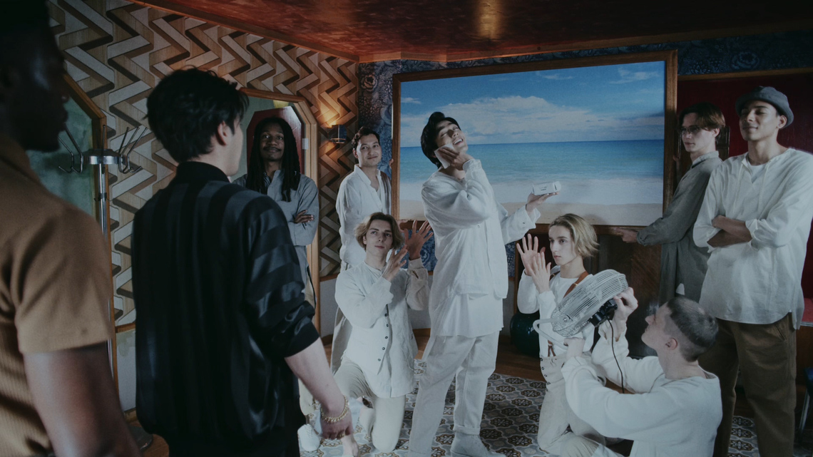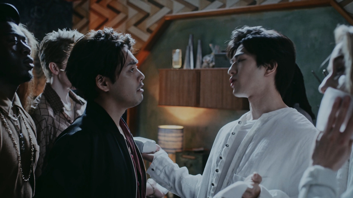 A wild-style group centered around Yanagi wipes sweat simultaneously with satisfied expressions, representing the traditional users. Then, a soft-style group led by Nitta appears, gently wiping their faces, and the two groups face off. When Nitta says, "It's not just about sweat, right?", the atmosphere becomes tense. Nitta then argued, "You can use it whenever you want, whenever you feel like refreshing yourself." Yanagira looked surprised.