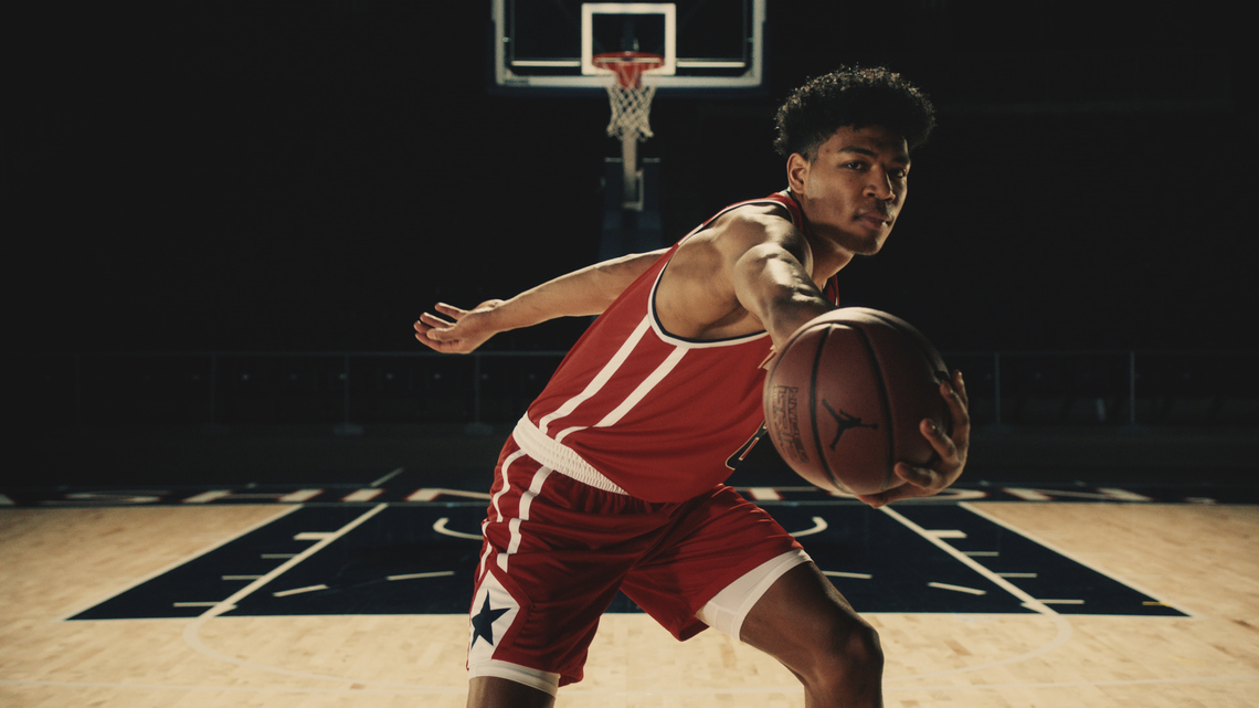 The video, styled like a music video, showcases global player Rui Hachimura performing moves not seen in games and rapping for the first time to an original song written by rapper KEN THE 390. It promotes the rechargeable radio-equipped TV "TV100".