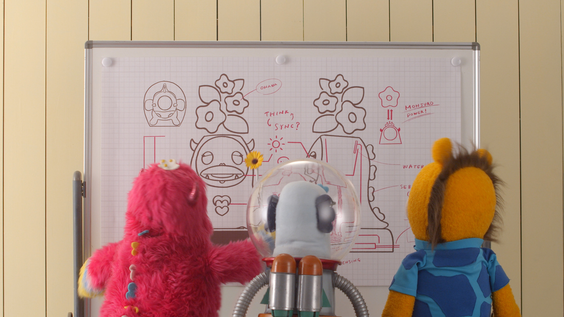 The product realizing Itsuki's imagination, the "Talking Flower Machine Powered by Monjuro," features Monjuro, a member of Hoshipro, as its motif. It incorporates talking and communication functions, along with a flower fortune-telling feature. The machine's voice is provided by Minami Hamabe, who plays Monjuro in TV commercials.
