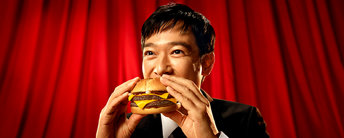 The commercial opens with Sakai addressing the audience: "To all the adults out there. You've worked hard." Following sizzle cuts of the product, he declares, "Now, let's enjoy being adults. You've worked hard," and takes a hearty bite of the burger. Sakai, representing "adults," conveys the product's appeal with a powerful cheer for those who strive.