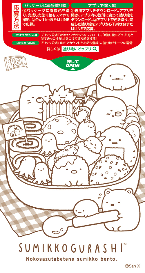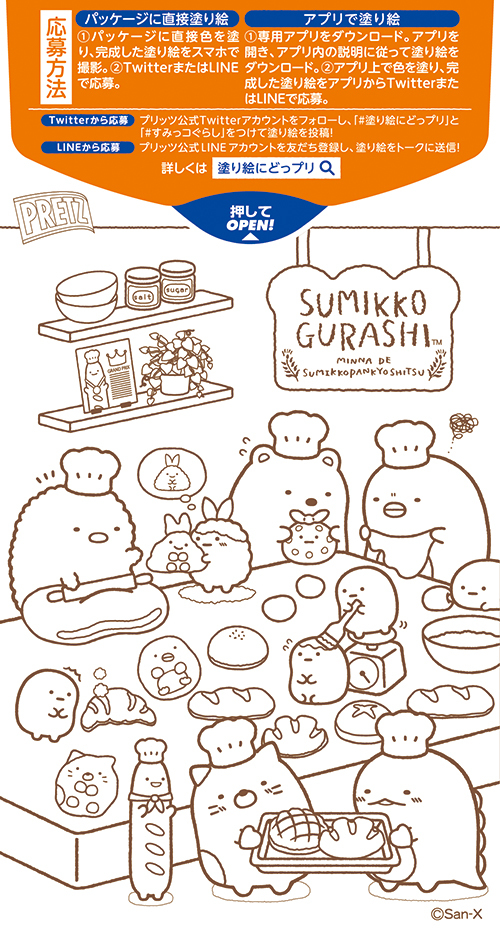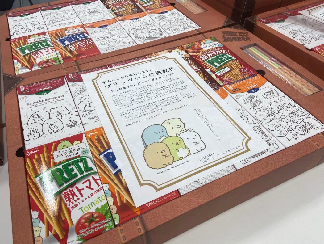 Ezaki Glico will launch the "Adult Coloring Book Doppuri Campaign" featuring a collaboration between its snack "Pretz" and the popular character "Sumikkogurashi" starting April 14.