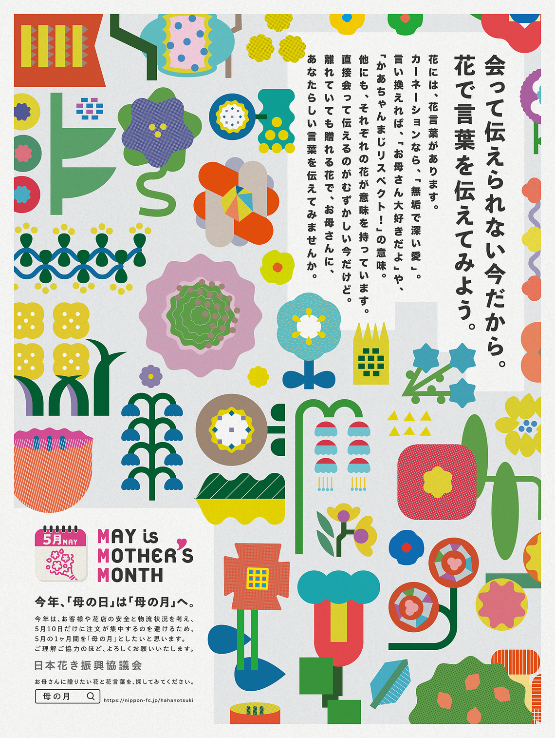 Alongside the message encouraging people to express gratitude to their mothers not just on Mother's Day (May 10th) but throughout the entire month of May, it called out to everyone, especially young people unable to return home: "Because we can't meet in person right now. Let's try conveying our words with flowers."