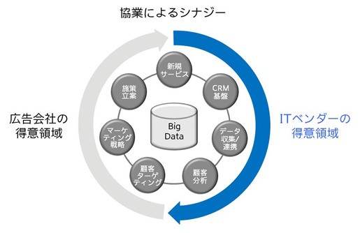 Did you notice how frequently articles about collaborations between advertising agencies and IT vendors in the big data field graced the front pages of business newspapers last year? Dentsu Inc. also announced a business partnership with Fujitsu Limited (hereinafter Fujitsu) in May of last year (※1).