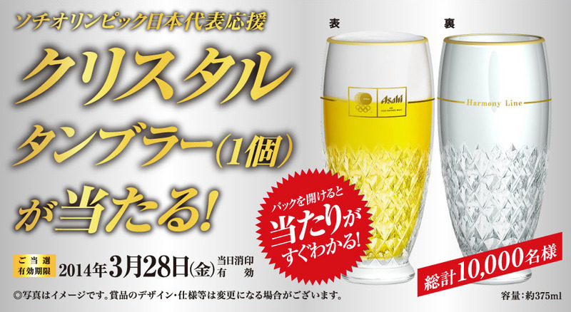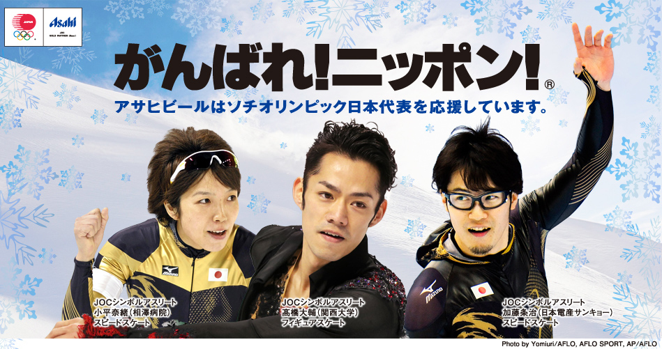 Asahi Breweries, a Gold Partner of the Japanese Olympic Committee (JOC), is running a promotion themed "Shine, Japan!" ~Together to the World's Summit~ for the Sochi Winter Olympics opening on February 7. They are releasing beers with support designs and new genre products.