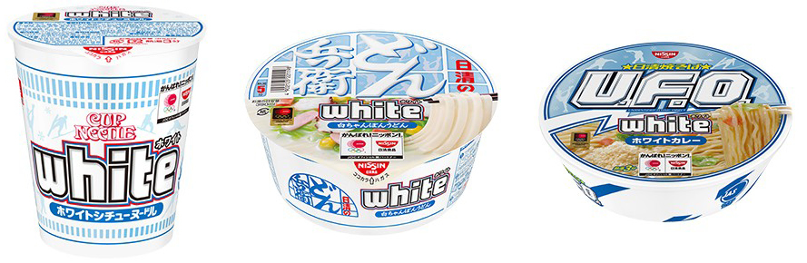 Nissin Foods, an official partner of the Japanese Olympic Committee (JOC), has released the officially licensed cup noodles "Go for it! Nippon! white Trio" to support the Japanese Olympic team at the Sochi Olympics.