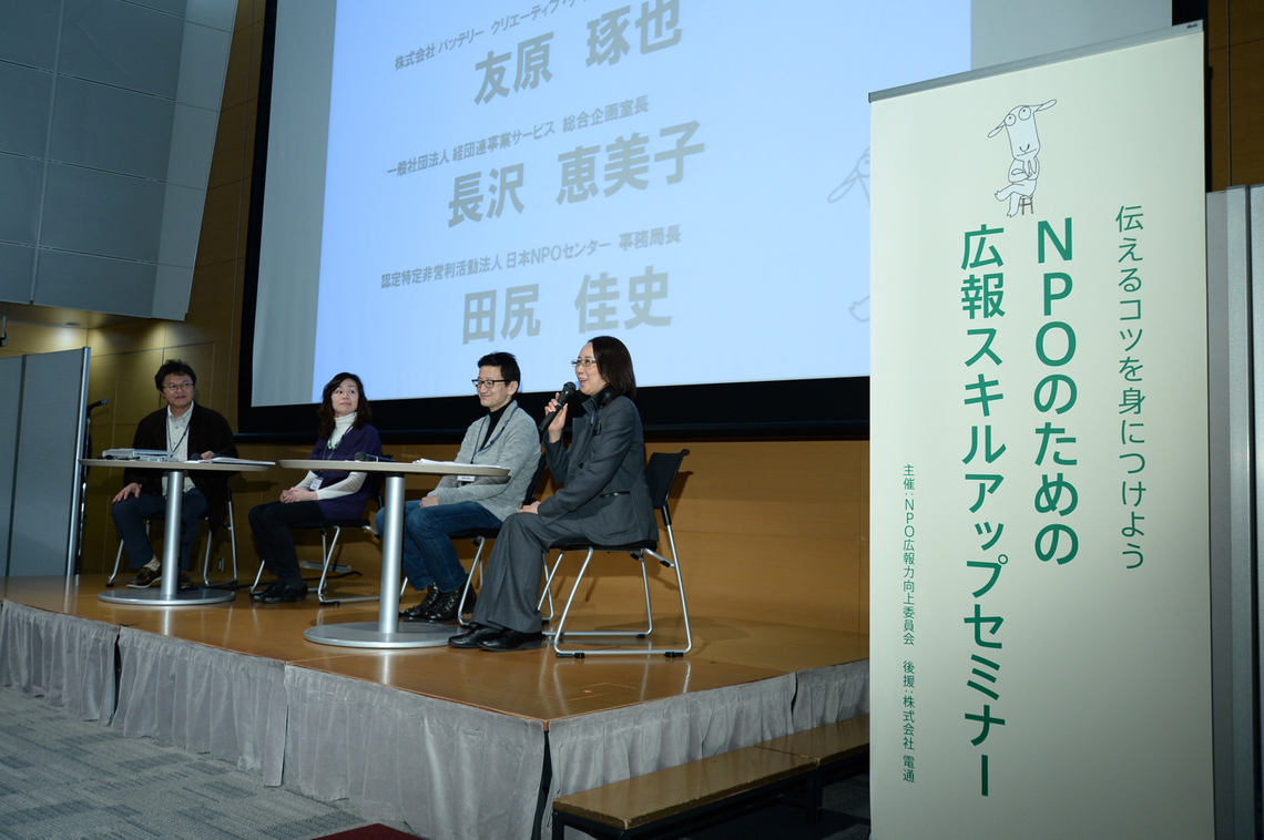 The opening keynote session, "Taking 10 Years of Learning to the Next Stage," was moderated by Yoshifumi Tajiri, Managing Director and Secretary General of the Japan NPO Center, with three members of the NPO Public Relations Enhancement Committee speaking. Momoko Koga, Representative of the Fukuoka NPO Center, explained that communication serves two purposes for NPOs: "Externally, it's a means to increase supporters; internally, it helps identify organizational and communication challenges." Emiko Nagasawa, General Planning Office Manager at Keidanren Business Services, shared the insight that "Companies engaged in social contribution activities most seek information about what is actually happening on the ground. Communicating this is crucial." Takuya Tomohara, Representative of Battery, who contributed to the creation of the text "Tips for Effective Communication," pointed out, "While the technical skills behind NPO flyers and newsletters have improved over the past decade, the fundamental question of 'Who do we want to reach?' and 'What do we want to convey?' remains paramount." Looking ahead, Koga emphasized the importance of creating information and media with "human warmth." Nagasawa stated, "For successful collaboration between companies and NPOs, it's vital that all stakeholders share the purpose, goals, and passion." Tomohara expressed hope in the "human power" within each organization, noting, "Over the past decade, companies' understanding of NPOs has grown, shifting the relationship from one of 'facing each other' to 'working together.'"
