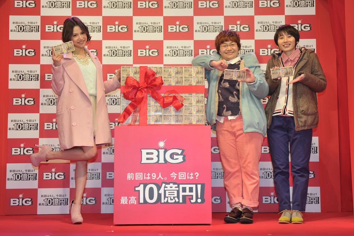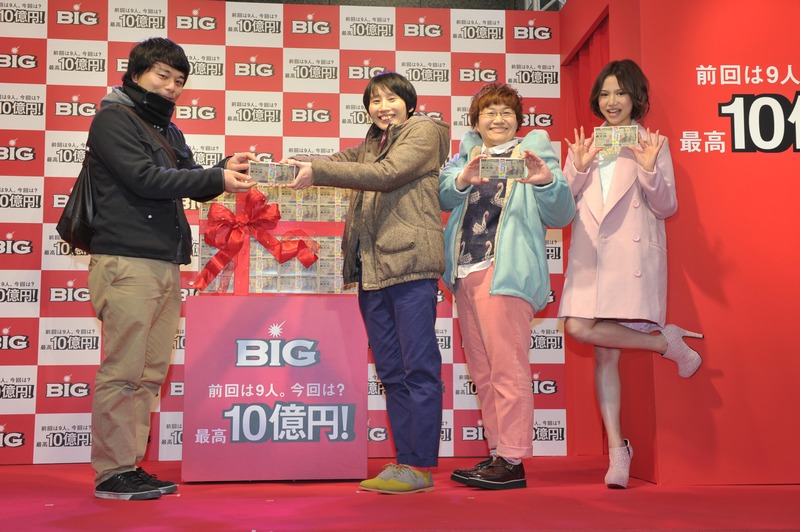 The Japan Sports Council (JSC), which operates the soccer lottery (toto), held a promotional event titled "Just Before Valentine's Day! Pray for a Win with a BIG Stack of Cash!? Get Chocolate! - BIG Lottery Commemorative PR Event with Top Prize of Up to 1 Billion Yen" at the J-One Plaza in Shinjuku Takashimaya, Shibuya-ku, Tokyo, on February 12. They announced that the first prize for this lottery, which goes on sale February 15th, will be a maximum of 1 billion yen, the same as last year.