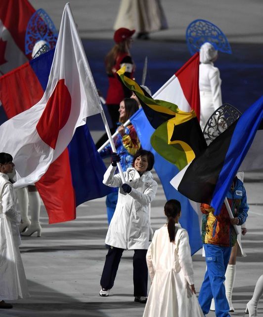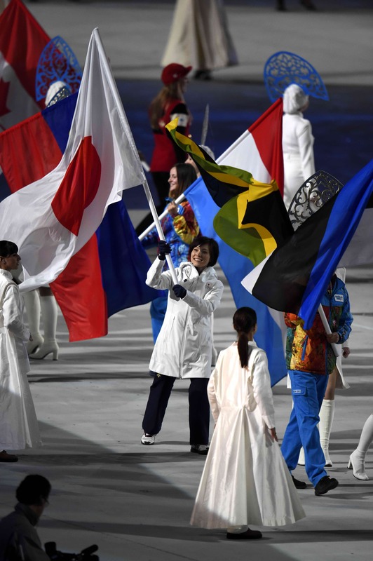The ceremony featured a spectacular showcase of Russian culture and art, with approximately 4,600 top performers, including circus and ballet artists, participating. Japanese athletes, including flag bearer Ayumi Ogasawara (women's curling) and figure skaters Yuzuru Hanyu and Mao Asada, entered smiling and watched the ceremony. As the polar bear mascot blew out the flame before it, the Olympic cauldron's fire was extinguished, bringing Russia's first Winter Games to a close after 17 days of intense competition. The Olympic flag was then handed over to PyeongChang, South Korea, host of the next Winter Games in 2018.