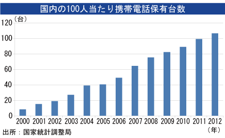 In 2012, mobile phone ownership reached 106 units per 100 people, and the smartphone market continues to expand. According to research firm GfK Asia, sales from January to September last year reached $1.24 billion, a 39% increase year-on-year. In terms of units sold, this represented a 42% increase to 5.1 million units.