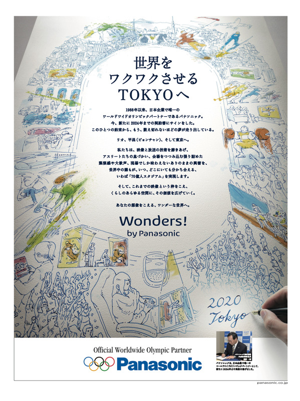 As part of its "Wonders! by Panasonic" campaign, Panasonic published full-page color advertisements in five major national newspapers and five sports newspapers on February 24, the day after the Sochi Olympics closed, while also airing TV commercials. Since 1988, Panasonic has been the only Japanese company serving as a Worldwide Olympic Partner, contributing to the operation of each Games by providing numerous video and broadcast equipment, security cameras, and more. On the eve of the Sochi Games opening, Panasonic signed a new partnership agreement with the International Olympic Committee (IOC), extending its partnership through 2024.