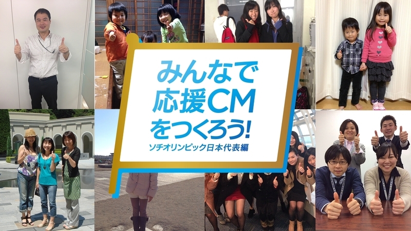 The ad prominently featured a large photo of a smiling Hanyu wearing his medal, surrounded by cutouts of various people giving a thumbs-up pose with the word "いいね!" (Thumbs up!). These images were submitted by the public for the company's "Let's Create a Support CM Together!" campaign leading up to the Sochi Games.