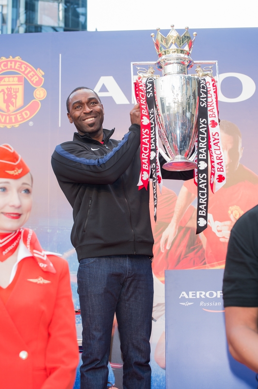 At the start, Sergey Moiseev, President of Aeroflot's Japan branch, stated, "Aeroflot is committed to supporting sports. We are delighted to hold this event with Manchester United. We aim to further strengthen our ties with Japan." Attendee and soccer fan/talent Teruyuki Tsuchida expressed his excitement, saying, "It's amazing to see the real thing, not a replica!" Legendary forward Andy Cole, who led the club to five league titles, appeared on stage. Now serving as the club's ambassador, Cole personally presented the trophy to attendees. He revealed a slight dent on the trophy, explaining it happened when someone dropped it in the excitement of victory. "This is the reward for a team that conquered 38 fierce battles," he said, expressing his affection for the trophy.