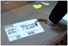 A system that projects images onto water surfaces as displays. It enables touch panel functionality like a tablet device on the water surface.