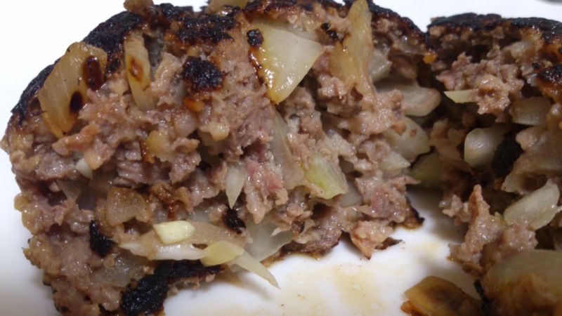 In my home kitchen, I experimented: roughly chopping or finely mincing the sliced meat, adding or omitting "binder," using raw onions or sautéed onions, adding or omitting a bit of ground meat, kneading thoroughly or lightly. Ideally, everything should be fried, but I'm mindful of lifestyle diseases, so I ate some as hamburgers. Through this trial and error, I discovered that the result definitely felt more "meaty" than anything made with ground meat. As a minced cutlet, it was a bit unbalanced and lacked the delicacy of a refined dish, but it offered a wild charm and satisfaction unlike anything I'd experienced before.