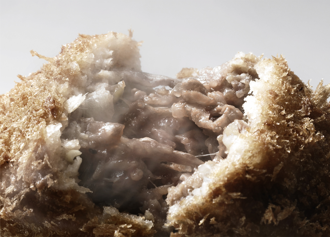 Personally, I love the smooth, finely ground hamburgers from long-established Western-style restaurants. Yet, it seemed the trend was shifting: "Coarsely ground over finely ground," "Extra coarse over coarsely ground." Even in ground meat dishes, recipes offering a satisfying bite and the distinct sensation of "eating real meat" appeared popular. This led to the original idea: "What if we made menchi katsu not with ground meat, but with sliced or diced meat?"