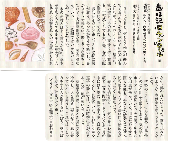 Published Date: 2014/03/200Seasonal Notes Rock 'n' Roll #18 【Kei-shitsu】【Spring Equinox】Previous articleNext article Illustrations & Text: Eriko Hirano #18 Seasonal Rock 'n' Roll [Kisetsu] [Spring Equinox] #17 Seasonal Rock 'n' Roll [Start of Spring][Rain Water] #16 Seasonal Rock 'n' Roll [Minor Cold][Great Cold] #15 Seasonal Rock 'n' Roll [Great Snow][Winter Solstice] #14 Seasonal Rock 'n' Roll [Start of Winter][Light Snow] #13 Seasonal Rock 'n' Roll [Cold Dew][Frost's Descent]