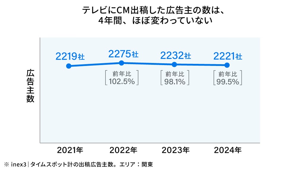 The number of advertisers placing TV commercials has remained virtually unchanged for four years